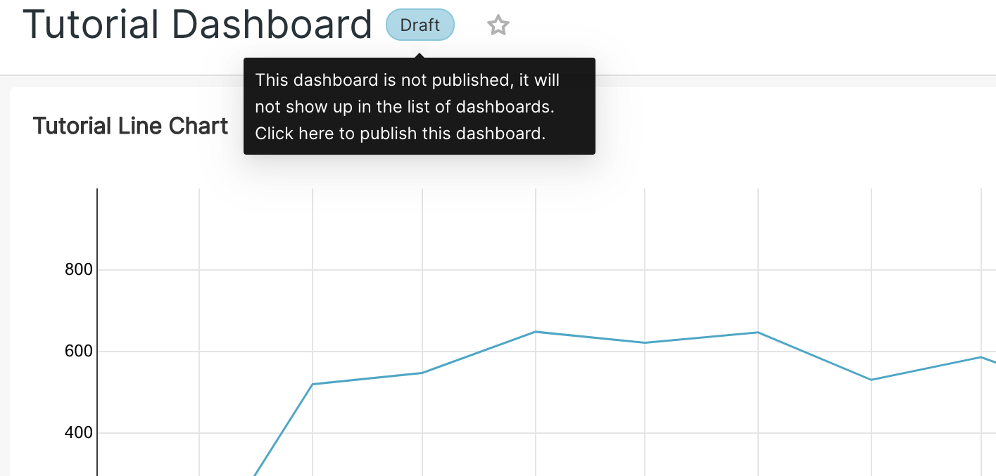 If you would like to make your dashboard available to other users, click on the Draft button next to the title of your dashboard.